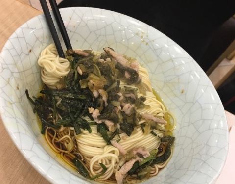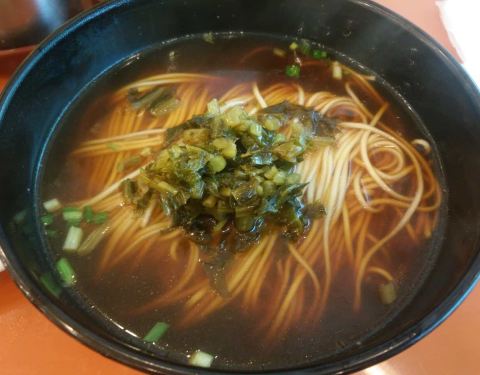 点的雪菜肉丝阳春面,浇头不错,但汤底有点油~素鸡有点硬。菜单不是很丰富,点不出什么特别想吃的,雪菜肉丝还是问了有没有,然后单独做的浇头合成的。所以到了那里如果没看到自己喜欢的,就先开口问问 可能有惊喜。