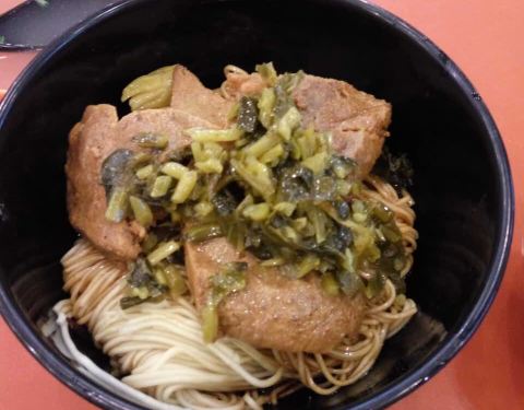 点的雪菜肉丝阳春面,浇头不错,但汤底有点油~素鸡有点硬。菜单不是很丰富,点不出什么特别想吃的,雪菜肉丝还是问了有没有,然后单独做的浇头合成的。所以到了那里如果没看到自己喜欢的,就先开口问问 可能有...
