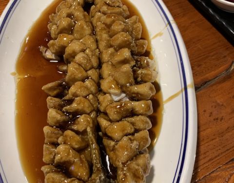 菜品送的琥珀核桃确实很好吃,脆甜;白灼雪花牛肉以及川汁虾球无可挑剔也没有特别之处