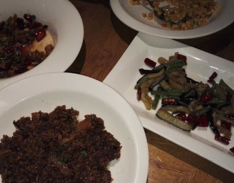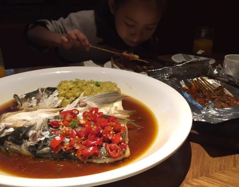 一直很喜欢的店,两人点了招牌鱼头,攸县香干,酱油炒饭,鱼头上的好快,没什么温度,感觉是别人退菜的,香干上的慢了点,香干有味道,让服务员拿走了,后边过来说厨师也说香干有味道,可以换菜,这边觉得吃的也差不多了,就没再点,直接买单走人!