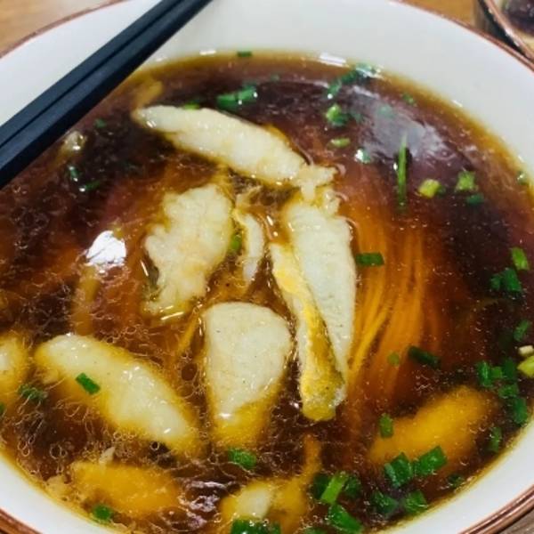 这里有名的是黄鱼面 但偏偏我的最爱是鳝丝面 男票最爱大肠面 再配浇头 素鸡