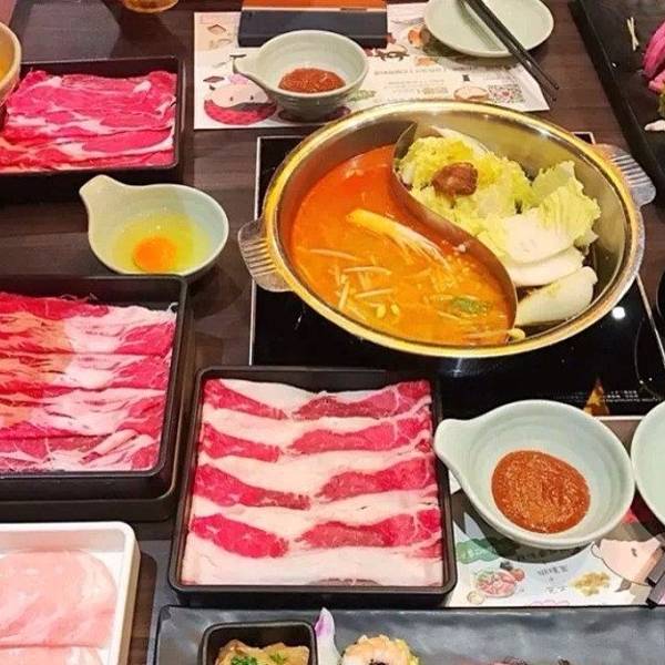 非常有名的寿喜锅,朋友推荐,特地去试试看。 提前定位了,不过直接去也不用排队,人没有坐满 环境: 挺有秩序的,座位也还舒适,装修的时尚年轻。 服务: 服务员反应很快,基本都是年轻人,有的还挺帅的。服务很好...非常有名的寿喜锅,朋友推荐,特地去试试看。 提前定位了,不过直接去也不用排队,人没有坐满 环境: 挺有秩序的,座位也还舒适,装修的时尚年轻。 服务: 服务员反应很快,基本都是年轻人,有的还挺帅的。服务很好,服务员会主动蹲下和顾客交流。添菜也很及时,服务很到位 食物: 肉类品种不多,大概五种吧,羊肉卷,牛肉卷,猪五花,鸡腿肉,牛肩肉。个人感觉最好吃的就是猪五花和牛腱肉。猪五花超级超级嫩,非常好吃,推荐。其次,牛肩肉也推荐,很嫩,而且超大块。服务员上肉的速度很快,不会因为你点了很多盘就故意放慢速度。自助餐嘛,当然要多多吃肉啦 蔬菜的话有服务员主动来问要吃什么,他会帮你加,菌菇和蔬菜的品种挺多的 锅底首推寿喜锅,非常赞,甜甜的。原味筒骨锅也还不错 餐前点心很棒,四种口味,都好吃 饮料有可尔必思,赞 甜品比较一般,有冰淇淋,咖啡冻(个人不喜欢,试大家的口味了),奶酪还不错的,焦糖布丁也好吃 总体来说服务口味都挺好的