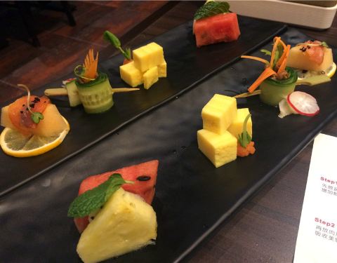 肉肉还是牛肩肉和松阪猪肉比较好吃,鸡肉不灵额,有股味道。 蔬菜店员会推着小车来问要啥,阿拉啥都没要,肉都吃不下了还吃什么菜呀... 就把锅里原本搭配的那些菜捞掉了。 甜品也有六种,不过都不咋地,就个柠...肉肉还是牛肩肉和松阪猪肉比较好吃,鸡肉不灵额,有股味道。 蔬菜店员会推着小车来问要啥,阿拉啥都没要,肉都吃不下了还吃什么菜呀... 就把锅里原本搭配的那些菜捞掉了。 甜品也有六种,不过都不咋地,就个柠檬片蘸糖蛮有意思的~
