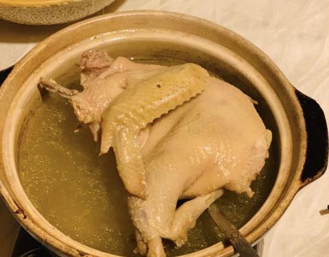 - 深山老屋(国顺东路店),菜品有老母鸡汤半个,炖的酥烂,筷子一夹就碎了