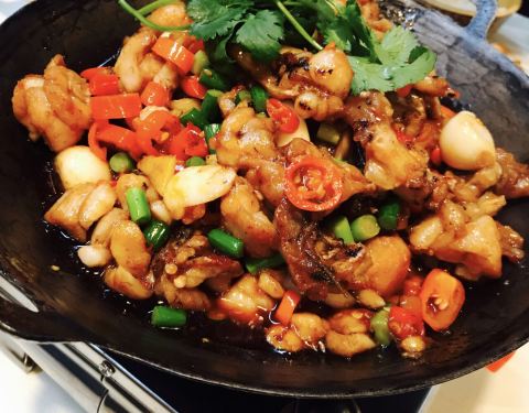 记得之前深山老屋门店只有一两家,现在都有四家了哦。主打农家菜,参观厨房还送鸡蛋,对于自己的厨房倒是很有自信呢。 生意很好,服务人员都有自己负责的桌子。 鸡杂微辣,还挺下饭的。椒盐猪手外表炸的脆脆的,很好吃。里面黏黏的就感觉稍微腻了点。牛蛙煲虽然锅小,但是牛蛙倒是给的很足。煮的蛮入味。