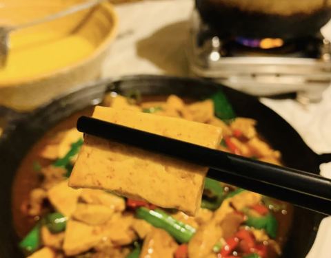 深山老屋(国顺东路店),菜品有老母鸡汤半个,炖的酥烂,筷子一夹就碎了;农家小炒肉,切成薄片,炒的很香;湘味老豆腐,和豆腐一起的是猪油渣,很香的。
