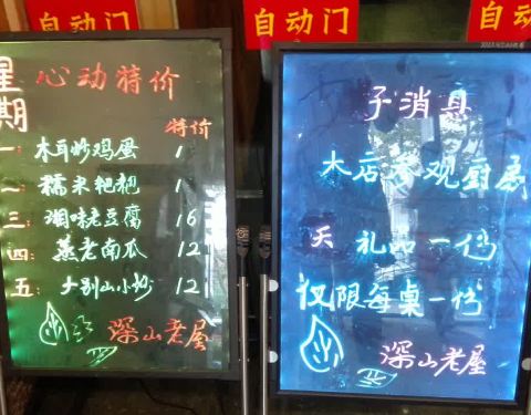 写点评才发现,这深山老屋竟然也是个连锁店?今天也是路过那边,刚好吃饭时间。被门店吸引,看着装簧还比较古老,想着来试试。还算可以喔,性价比也可以。而且菜量不小,农家菜的形式,鱼头还不错,很入味!环境干净。