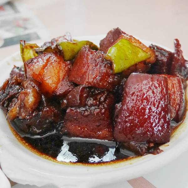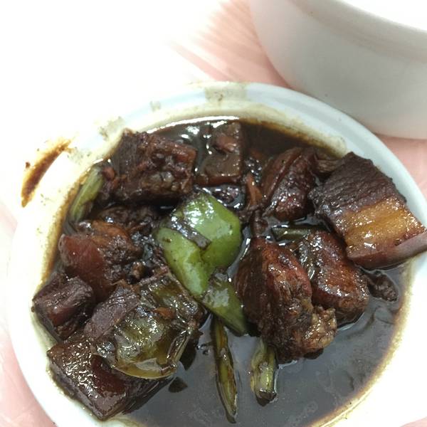 红烧肉是店里的招牌,分量也是比较少的,跟我们的做法不同,加了辣椒提味,里面的辣椒竟然也很好吃,瘦肉不柴,肥肉不腻,酱油和汤配到一起,又有辣椒的香气解腻,确实是品质很不错又下饭的水准,也确实味道很不凑。