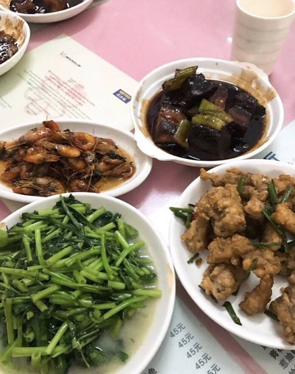 点菜:草头(作为广州人,不知道这是啥)、油爆虾、腌笃鲜、红烧肉。