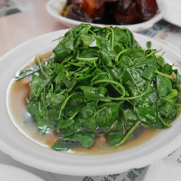 「清炒鸡毛菜」因为进入夏天了,所以没有草头这个菜了,点了清炒鸡毛菜不错,看隔壁的小哥哥,吃了红烧肉就着一盘儿鸡毛菜全吃完了。