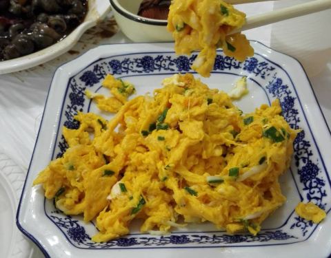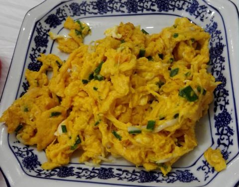 在朱家角游玩,吃饭当然也要选一个能够看风景的饭店,兜兜转转,发现这家店2层有一个景观阳光房,感觉不错,上了2楼,的确景色一览无余,空调也比较足,在炎热的日子,在这里看风景,很惬意。银鱼跑蛋,蛋的颜色...