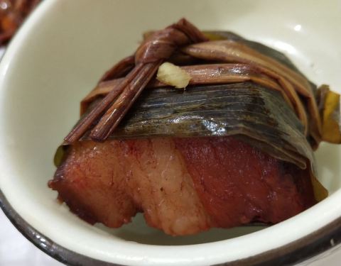 笑脸笑迎八方客,菜品好吃水云阁。 扎肉~有粽叶的清香,淡香味糯,好吃。我们两人也就坐下点菜