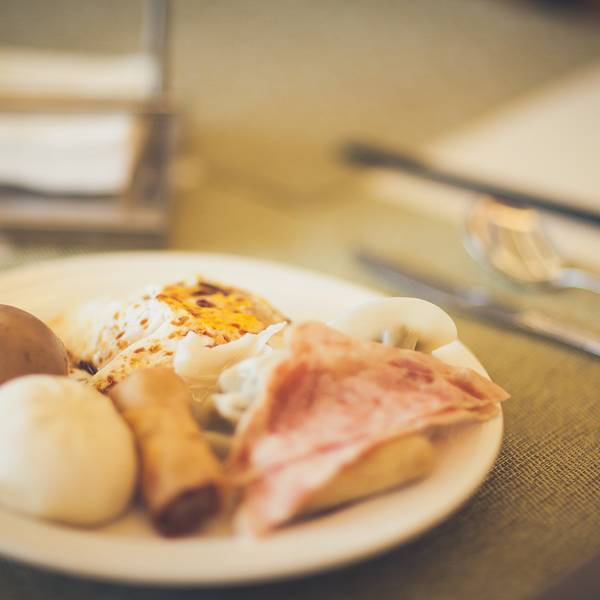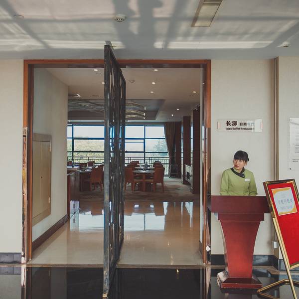 除了晚餐可选的小火锅,早餐通常安排在长泖自助餐厅,是中西式自助式早餐。餐厅位于大堂左手边的二楼,从一个长长的楼梯上去,可以看到餐厅的大门,边吃早餐边赏美景,美好的一天就从这里开启!。