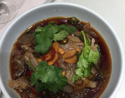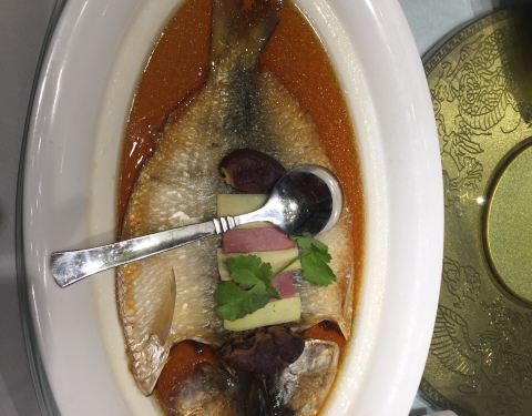 菜的味道还可以,就是几乎每个菜都偏咸,估计就是宁波人的口味吧。雪菜蒸大黄鱼很新鲜,鱼肉很嫩。鸡汁安吉笋味道很鲜,笋也挺嫩的。脆皮牛肉也不错,肉质脆脆的,香香的。