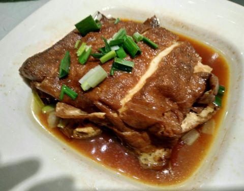 - 脆皮牛肉也不错,肉质脆脆的,香香的。雪菜蒸大黄鱼很新鲜,鱼肉很嫩。鸡汁安吉笋味道很鲜,笋也挺嫩的