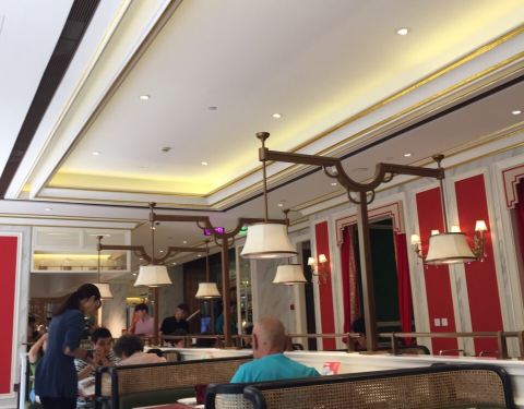 以前一直很喜欢他们家的点心,这次正好利用下午茶时段前去体验。广式点心有蒸、炸,甜品较少,价格在25-15元。江浙点心有春卷、小笼等,价格在9-15元。我点了艇仔粥(有猪肚等,味道偏淡)、虾肠粉、蒸凤爪、叉烧包等。最不好吃的是叉烧包,面粉很干,感觉不新鲜放了很久的样子;凤爪、虾蛟、肠粉都不错。红豆糕有点偏甜;潮州粉果里面放菲菜,我不太喜欢。甑糕就象糯米饭。虽然能畅点,但我已吃不了,无法再尝试其他 了。总体讲味道还可以,希望能增加甜品。