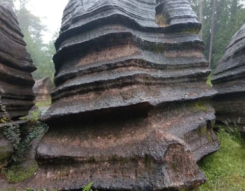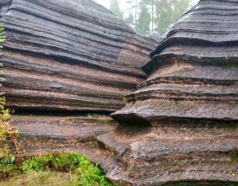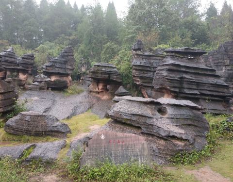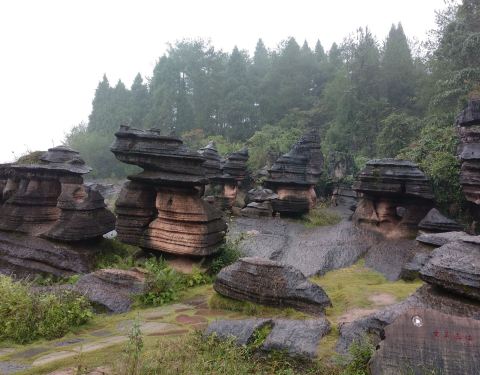 红石林地域与坐龙溪峡谷一样同属史上所称的“扬子古海”。海底沉积了大量混合泥沙的碳酸盐物质,经地壳运动和侵蚀,溶蚀作用,形成了这咬美丽的地质奇观。