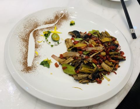 切成片后大火爆炒,佐以洋葱青椒,真的是最好的搭配,鳝鱼口感香嫩中还带点韧性,配菜洋葱青椒也好吃