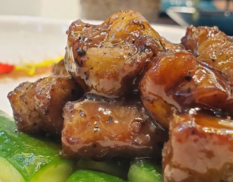 璞悦楼位于龙山桥附近,闹中取静,他们家的装修恢弘大气,每个包厢都经过精心的布置。港式花胶鸡在冬季特别应景,金灿灿的汤头香醇浓郁,一碗汤下肚整个人都暖了。沙姜猪脚既有沙姜特殊的香味,又有酱汁的加持,咬一口猪脚的表皮,Q弹爽脆,满满的都是胶质。大块饱满的田鸡腿,雪白嫩滑,口感也很棒,用椒盐的做法,外层被包裹上了一层焦香的外壳,咬起来还有点脆脆的感觉。璞悦楼的菜品,特别拿得出手,不管是家里小聚,还是宴请宾客,来这里都是不二的选择。