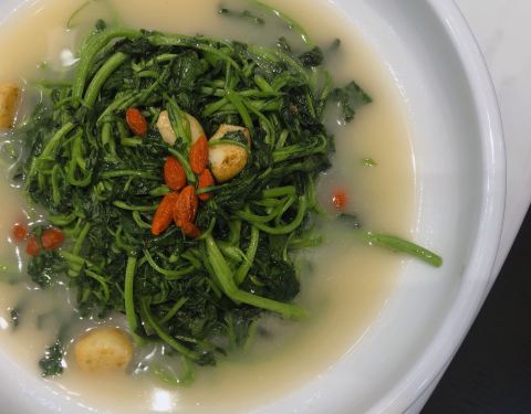 粤菜的香煎蚝仔烙和我们闽菜有所雷同,主要用蚝仔和鸡蛋,整个蚝烙外层香脆,和蚝肉的软嫩正是刚柔并济,璞悦楼巧妙的加入了干贝丝,口感口味的大幅度提升让人欲罢不能。