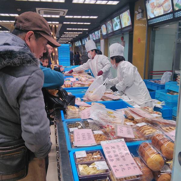 家里冰箱空了,所以选择工作日来这里买点点心。没想到工作日的人也那么多,基本也都要排队,不过阿姨们收银速度还