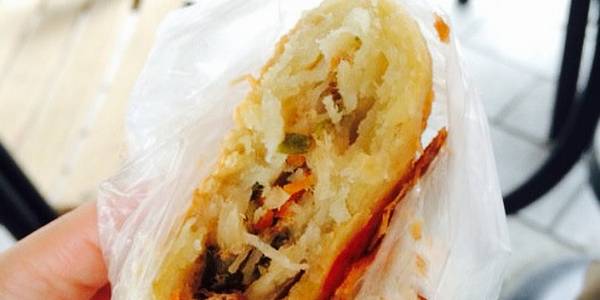 豆沙细腻而且不是很甜,不会有堠甜的感觉。一个下去也不会很腻。还买了点肉丝春卷,放油里煎一下沾上醋也很美味