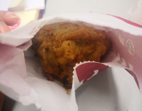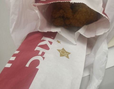 一直觉得肯德基挺好吃的,尤其是她家的吮指原味鸡,每次必点的,而且三角或者肋旁是最好吃的,自取点单,果然给了我鸡腿,然后让他换掉了