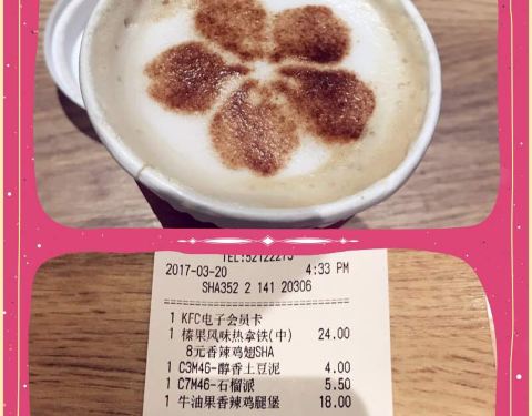 单位午饭真的不好,趁着阳光明媚,去昌平路地铁站的肯德基买了点午餐,手机点餐,还没到点就点好了,到店以后立刻就能取走,到店以后发现冰激凌也不错,又网上加了一单,抹茶巧克力冰激凌只要8元一个性价比好,而...单位午饭真的不好,趁着阳光明媚,去昌平路地铁站的肯德基买了点午餐,手机点餐,还没到点就点好了,到店以后立刻就能取走,到店以后发现冰激凌也不错,又网上加了一单,抹茶巧克力冰激凌只要8元一个性价比好,而且真的好好吃,其他就买了辣鸡翅2对薯条一份还有个新品避风塘鸡腿反正只要10元