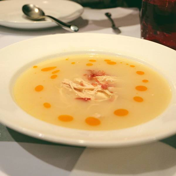 大众点评上被评为上海性价比最高的西餐厅,还上了舌尖2。我提前半个月定了位子。老板非常好,还会提前打电话来确认是否会到,并且给我们留位置到将近一点。 我们点了一些招牌菜。最喜欢吃的是沙拉哦~这个沙拉很特别,囡囡吃的停不下口。那个鸡丝焗意面也是相当的赞。猪排很特别,竟然一点都不油腻。我们基本上照着大众上点的菜。金鞭汤里竟然有鱼翅,可是口味一般般。 俩吃货除了拍照就是补充能量拉。