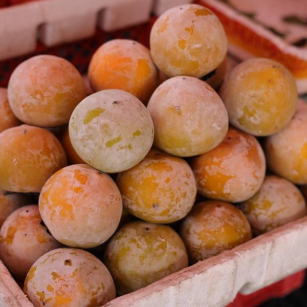 增城派潭自驾游回家,顺便去派潭市场买点土特产回家,顺便也买了晚餐的菜。市场比较大比较干净,食品摆放很整齐,熟食档有各种酿茄子、酿辣椒、酿豆腐、酿蘑菇……这个手工做的真是太费心了!水果摊的脆柿子和软柿子好诱人呀!现在正是本地柿子采收的季节,买了柿子,然后买了甜甜的大枣,一路在车上啃。哈哈,快乐的周末就这样度过了!关于柿子,密石村种植红柿有三百多年历史,位于增城区派潭镇白水寨省级风景名胜区,地势较高,众山环抱,土壤属三沙七泥的红壤土,有机质含量较高,盛产的红柿质量上乘,远近闻名。密石红柿果实适中,一般每个有二、三百克重,大者有五百多克;果肉细密,无核或小核,多汁、多糖,剥皮也不带肉,吃起来有“甜、软、滑”之感。保存期一个多月。鲜吃大红柿有降血压、解酒毒、止血润便之功效。大红柿还可制柿饼、柿干、柿糕、柿酱等。柿果的外层披白粉叫做柿霜,可提炼甘露蜜醇,可治喉痛、咳嗽。柿蒂、柿饼均可入药。这次还了解到一个知识点:未熟的柿子可制柿漆,是良好的防腐收敛剂,可供染网和装饰性涂料用。除了密石红柿、白水寨番薯、派潭白茶,派潭增城丝苗米也是本地的特产,返程可以带回家,收获满满,不虚此行。酿辣椒酿豆腐酿蘑菇