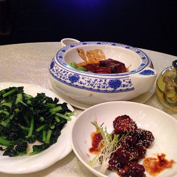 下午六点多才飞,老爷带我来中山公园吃上海人家。红烧肉,糖醋小排,都超级好吃!