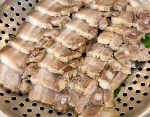- 【明洞菜包肉】肉是放在水上蒸的,口感不错,好吃!辣白菜口味,口感更加开胃! 莫位妹子来此就是为了它