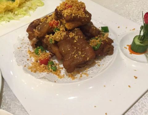 这家算是改良粤菜吧,在腾飞大厦里面,交通也算便利,整体环境和服务尚可,价格和菜量都适中。由于是周末聚餐,我们一桌人比较多,基本上菜单都点了一遍,有些菜口味还不错,但大部分感觉比较普通,点心啥的没什...这家算是改良粤菜吧,在腾飞大厦里面,交通也算便利,整体环境和服务尚可,价格和菜量都适中。由于是周末聚餐,我们一桌人比较多,基本上菜单都点了一遍,有些菜口味还不错,但大部分感觉比较普通,点心啥的没什么亮点,也可能是点得多了,到后面有点吃不下了,所以觉得口味一般吧。