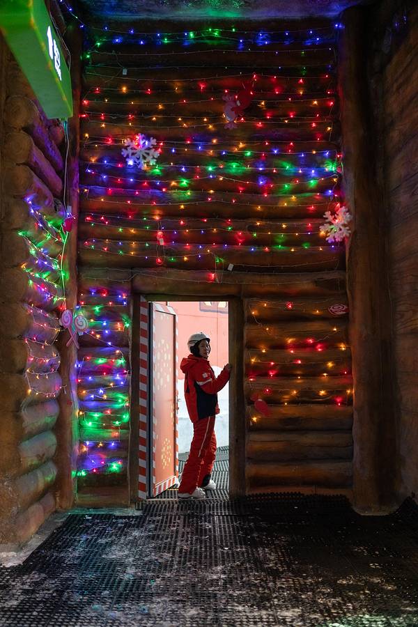 随身不要带太多物品,换上专业的滑雪服、滑雪靴、头盔,在雪场内领取雪板,准备出发~不过一道门的距离,就让我从温暖的昆明,去到了“北方”。新奇的雪世界别说小朋友了,少见雪的朋友都会控制不住自己。雪场内部得有几个足球场大,雪道分为初级道和中高级道,专业高手和菜鸟各行其道,相互干扰。