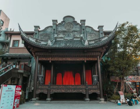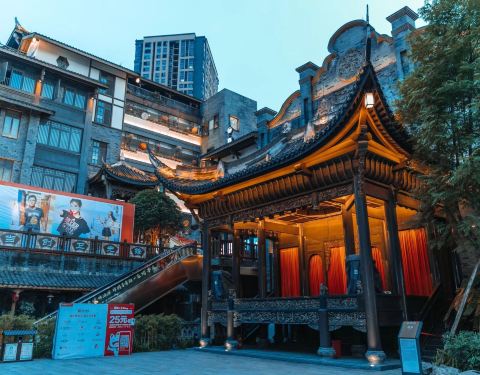 新打造的古镇,规模比洪崖洞还要大些,在李家沱融汇半岛,紧靠滨江路,挨着茶花广场。古镇背后是星级酒店、写字楼,也是依坡而建,层层叠叠,远远望去与渝中区洪崖洞有相似之处,不过人气就差得玄远。吃喝玩乐倒...