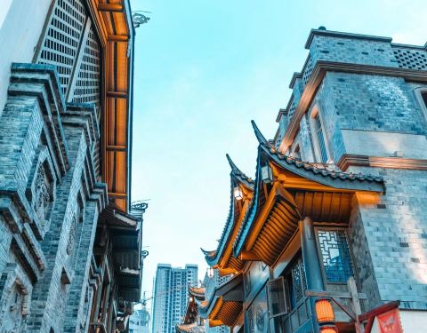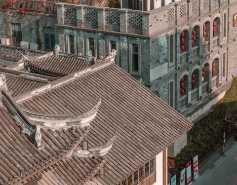 新打造的古镇,规模比洪崖洞还要大些,在李家沱融汇半岛,紧靠滨江路,挨着茶花广场。古镇背后是星级酒店、写字楼,也是依坡而建,层层叠叠,远远望去与渝中区洪崖洞有相似之处,不过人气就差得玄远。吃喝玩乐倒是一应俱全,需要时间来沉淀吧。