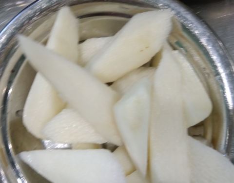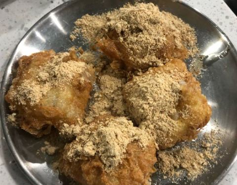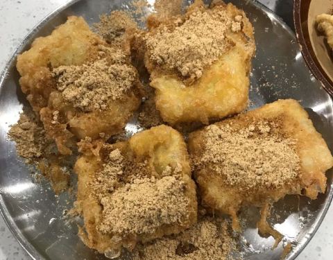 - 裹着蛋的糍耙咬一口露出了洁白的身躯,其实就是年糕的口感吧,混着红糖,热热的吃才美味