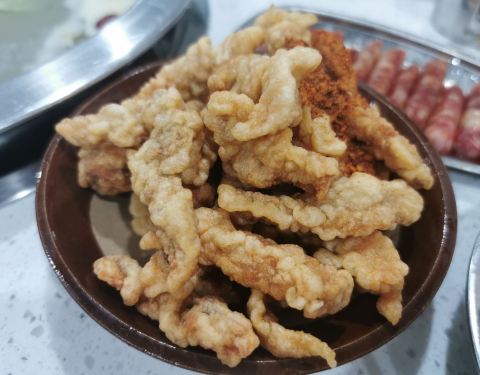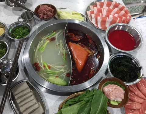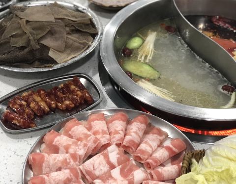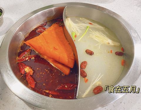 这家小伙伴约了好多次了,每次经过看到长长的排队人潮就放弃了。今天小伙伴下班比较早,五点多就到了,立马决定就他了。 他家只有辣锅和鸳鸯,点的菜品推荐酥肉,猪脑,嫩牛肉,还有冰粉。饮料他家有自助罗汉果茶,很解辣。酥肉从开始到结束都保持着酥的品质很难得。牛肉超级嫩,份量也很足。猪脑绵密的口感实惠的价格两大个14元,划算。冰粉也是用料很扎实,山楂片好吃。 服务必须点赞,朋友的白衣服不小心粘了火锅油,细心提醒,还有洗衣液帮忙紧急处理。