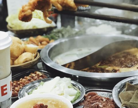 在SM城市广场二期逛街,五点半不到就想来早早的打卡电台巷,结果已经要排队叫号了,耐心的等待了45分钟,终于可以开吃了,在电台巷吃火锅是不是吃起来都有DJ的范儿。点一个鸳鸯的锅底开始涮起来,嫩牛肉和牛舌的分量都蛮多的,一盘盘肉肉就是火锅的动力,大口吃肉才爽快。裹着蛋的糍耙咬一口露出了洁白的身躯,其实就是年糕的口感吧,混着红糖,热热的吃才美味。素菜的价格也不贵,最便宜有3元的,确实是实惠。人均一百来块就吃得饱饱的。