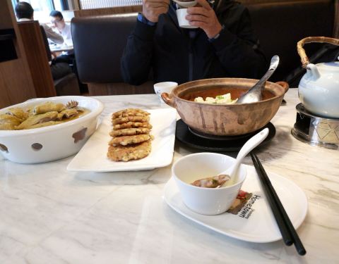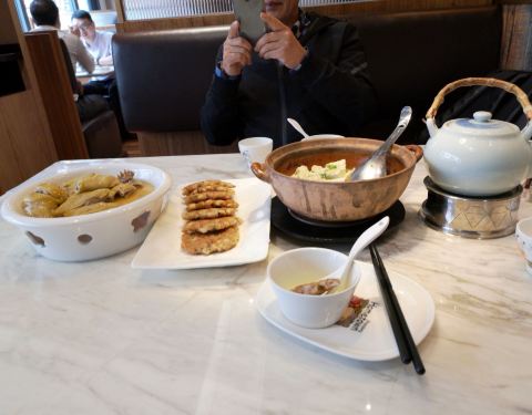 ...、饺子、烙饼等,都非常的好吃,它的煲汤也是每次必点,这次试的新菜是地瓜拔丝和蒸包,果然水准之上