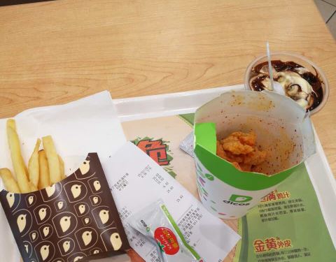 薯条又大又长,味道跟好,口感细腻。魔法鸡块很好吃。放上辣椒味道很足。冰淇淋口感也很细腻。草莓味的比较好吃。