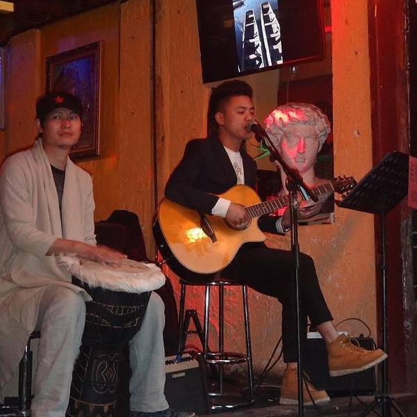 在七一街帅哥歌手,专门为听他的歌,吃的饱饱的我们又点了一份纳西炒饭58,一下杯咖啡48。贵囔囔的。