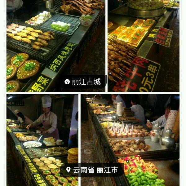 大研古城裡面有很多這種小吃一條街,類似小吃廣場一樣,都是什麼雲南十八怪的。個人覺得又貴又不好吃,真心不建議去!只有門口那檔黑山羊羊肉串和石板花值得試一下,其他的沒什麼特別,而且不好吃!!!
