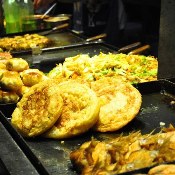 汤足饭饱走人。下楼出门就是小吃街,看着那么多小吃,一样吃不下,好吧,就留下美照解馋吧!