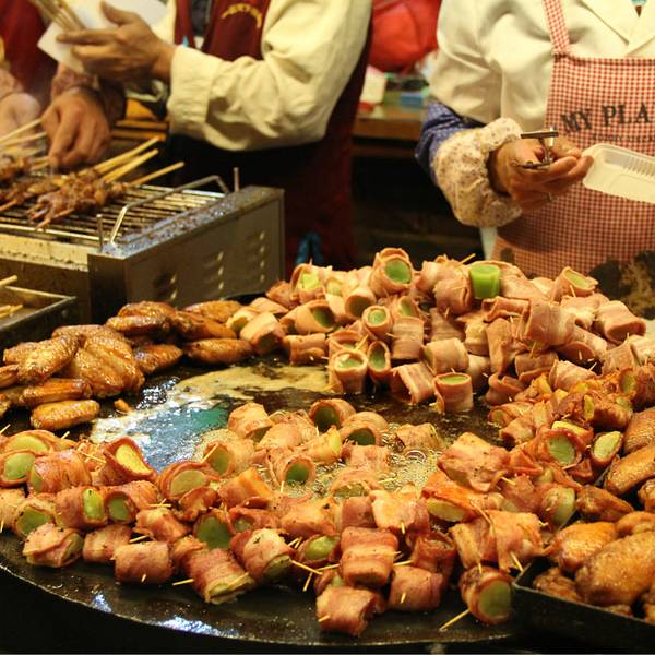 小吃一条街,这个大酒驾,真的很好吃!是培根包着莴笋,是我吃的丽江小吃里面最好吃的了!yammi!