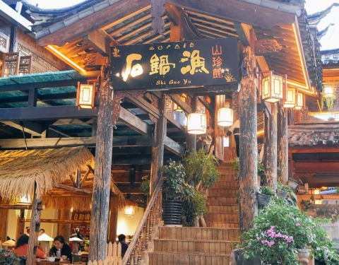 位于丽江古城四方庙会,是当地比较有名的吃鱼的地方。采用的是接丽江地气的老木质装修结构,墙壁上贴满了来此用餐的人的留言。这里主要以吃山珍和鱼为主,各种野生菌也是不容错过的营养食材,汤用蒸汽石锅来做,用草帽当锅盖,是云南十八怪之一。