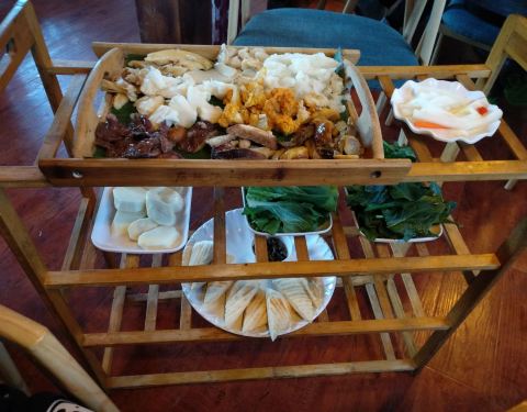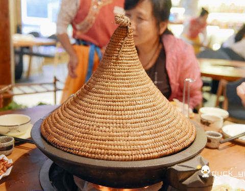 到云南旅游,当然要尝尝云南特色的蒸汽火锅。火锅上盖着草帽,的确以前没有见过,各种小菜,菌菇等放了满满当当,口味还是比较清淡的,茶水也是有当地特色的,两个女生吃得很饱,还是蛮不错的。