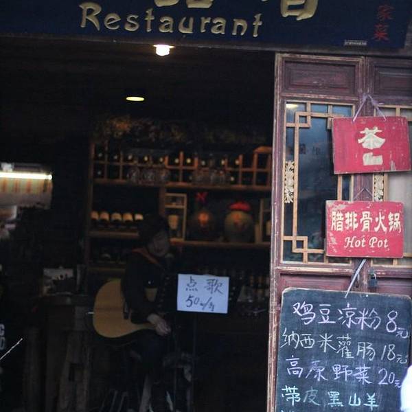 位置很好,在木府大门旁边,坐在餐厅就能看到游客进出木府大门,门前有条小溪,就餐时还有驻唱歌手表演,很有气氛。里面是纳西菜和丽江本地菜,口味还可以,因为地段好,价格略贵。感觉没有过去人气旺了,以前来坐的满满的,都没座位。