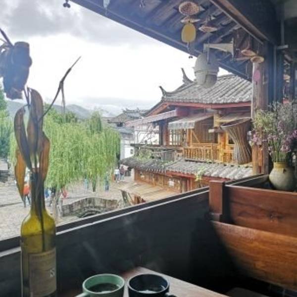 逛古城,木府门票60,和女密一致决定不进去浪费钱,情愿吃了喝了[偷笑]。这家就在木府边上,没到饭点,人不多。二楼的靠窗位子很赞,坐着喝喝茶,看楼下人头攒动,拍拍照等雨停出太阳。