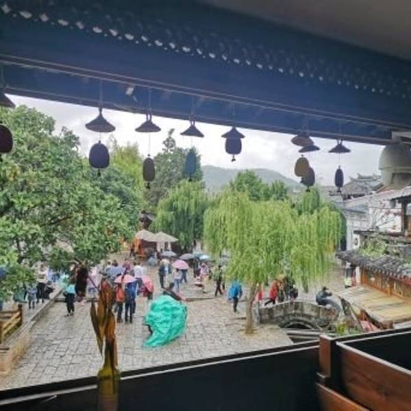 - 位置很好,在木府大门旁边,坐在餐厅就能看到游客进出木府大门,门前有条小溪,就餐时还有驻唱歌手表...